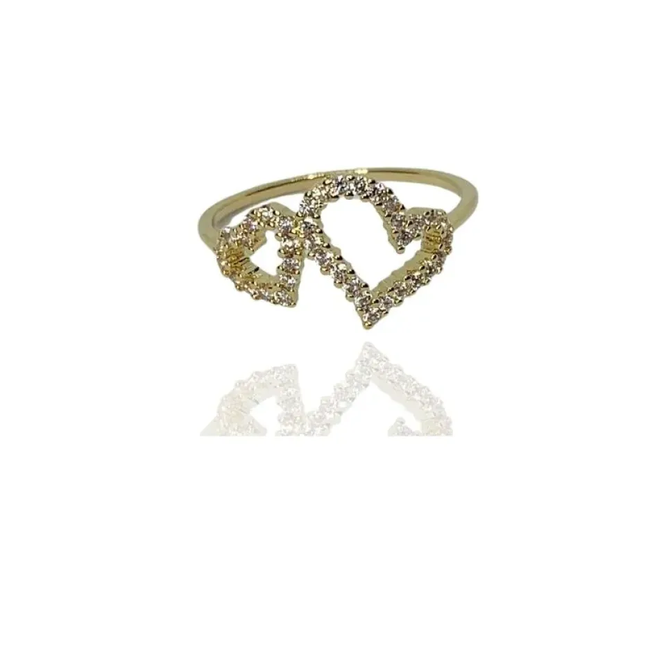 Anel 2 corações cravejados zircônias cristais