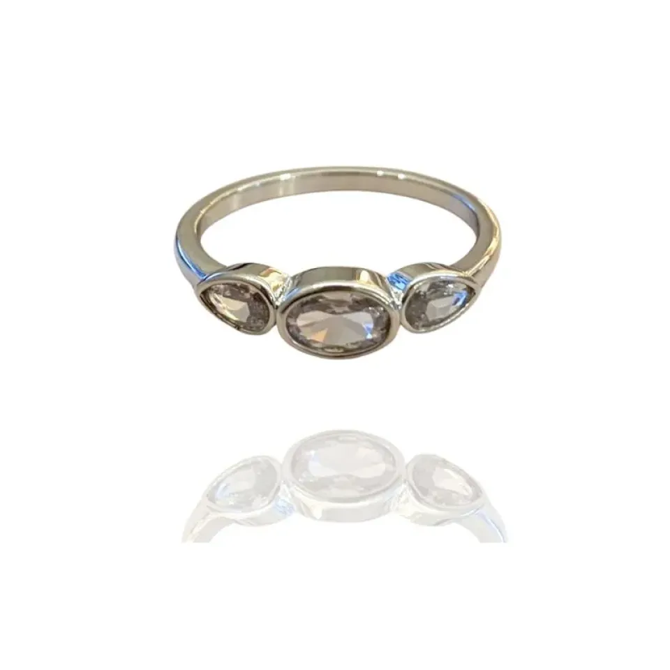 ANEL 3 ZIRCÔNIAS CRISTAIS OVAIS E GOTA