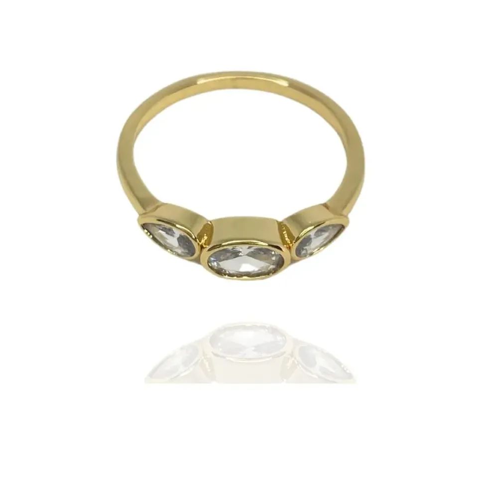 ANEL 3 ZIRCÔNIAS CRISTAIS OVAIS E GOTA