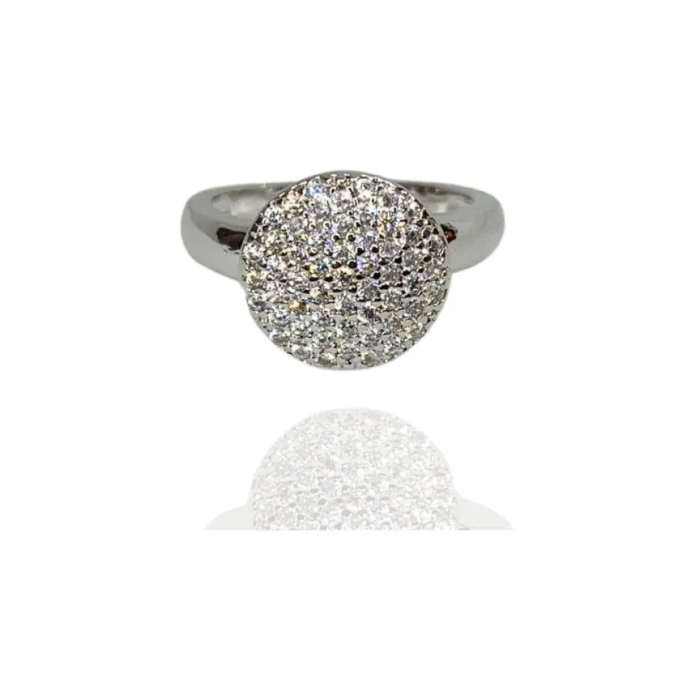 Anel chuveiro redondo M cravejado com zircônias cristais