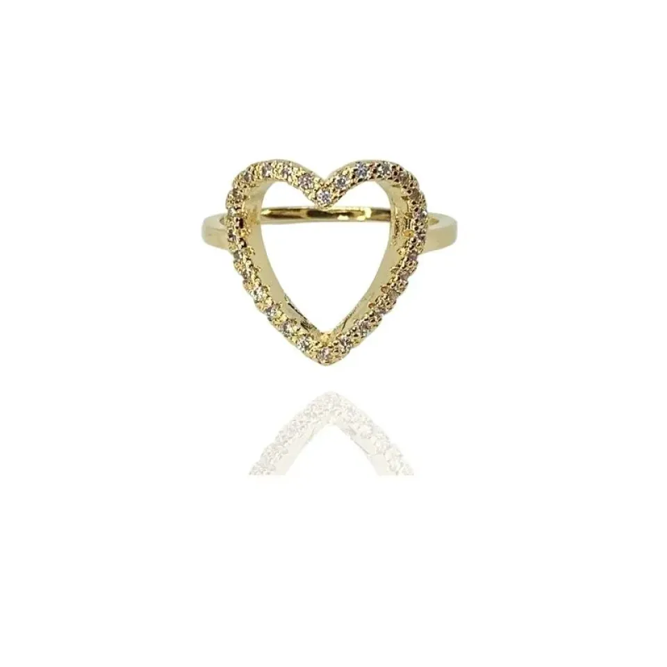 Anel coração vazado cravejado
