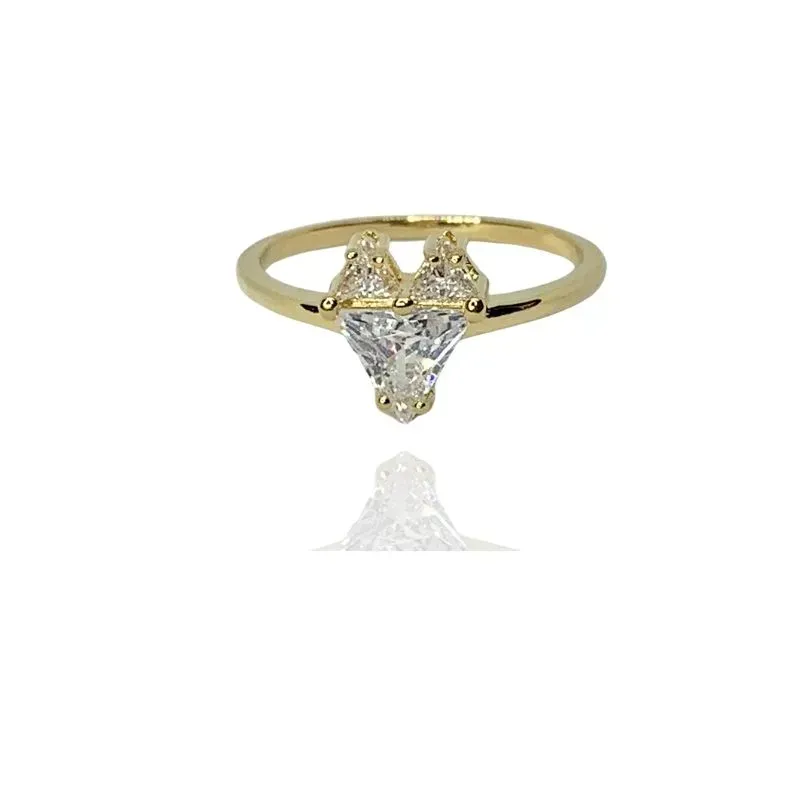 XAnel coração zircônias cristais em formato de triângulos