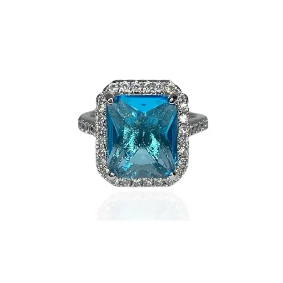 ANEL CRAVEJADO E PEDRA RETANGULAR AQUA
