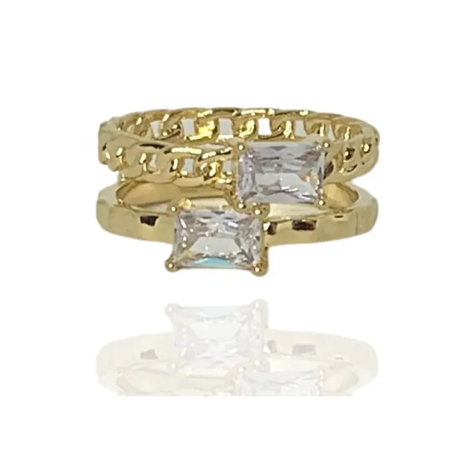 XAnel aro duplo com 2 zircônias cristais retangulares