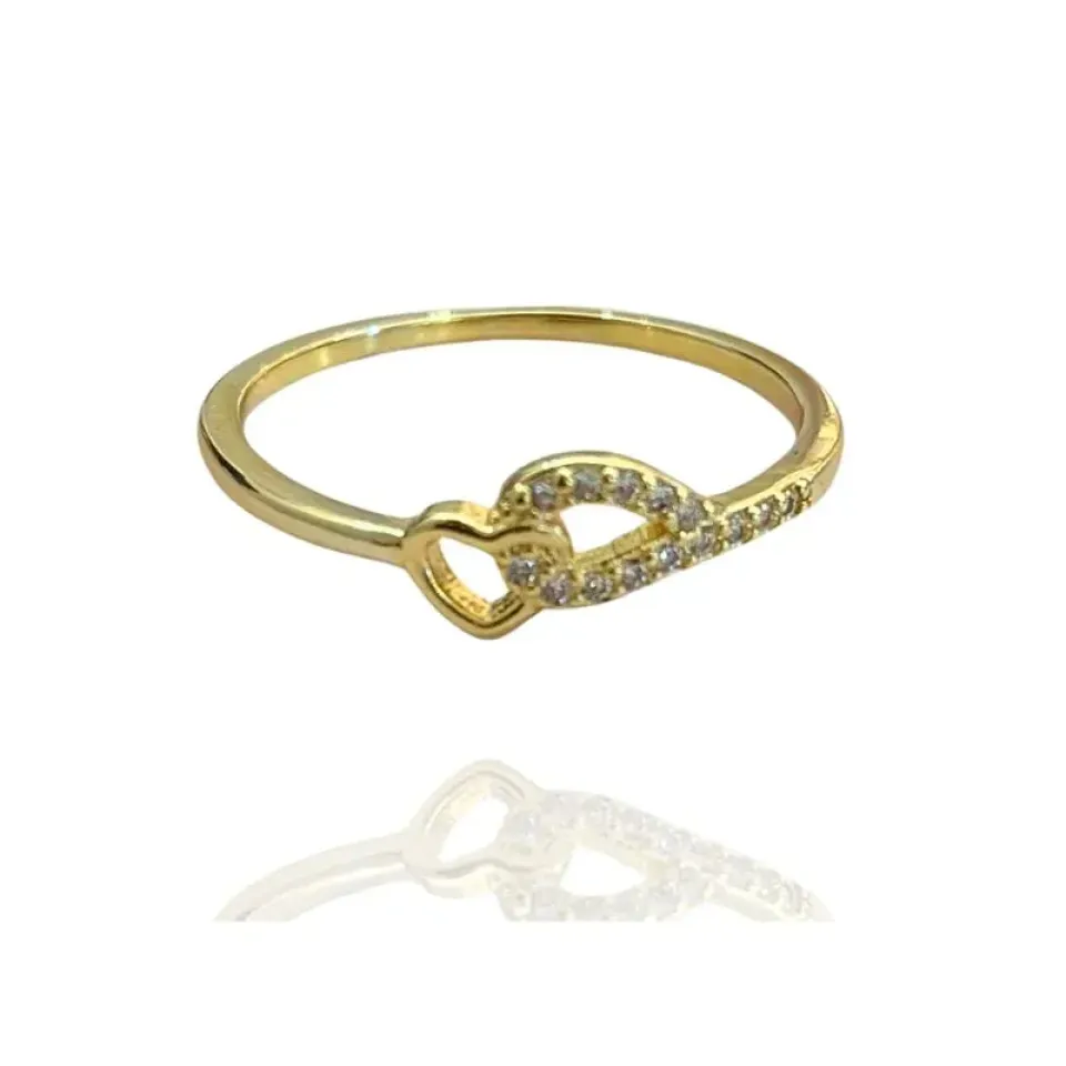 ANEL ELO CRAVEJADO CRISTAL E CORAÇÃO