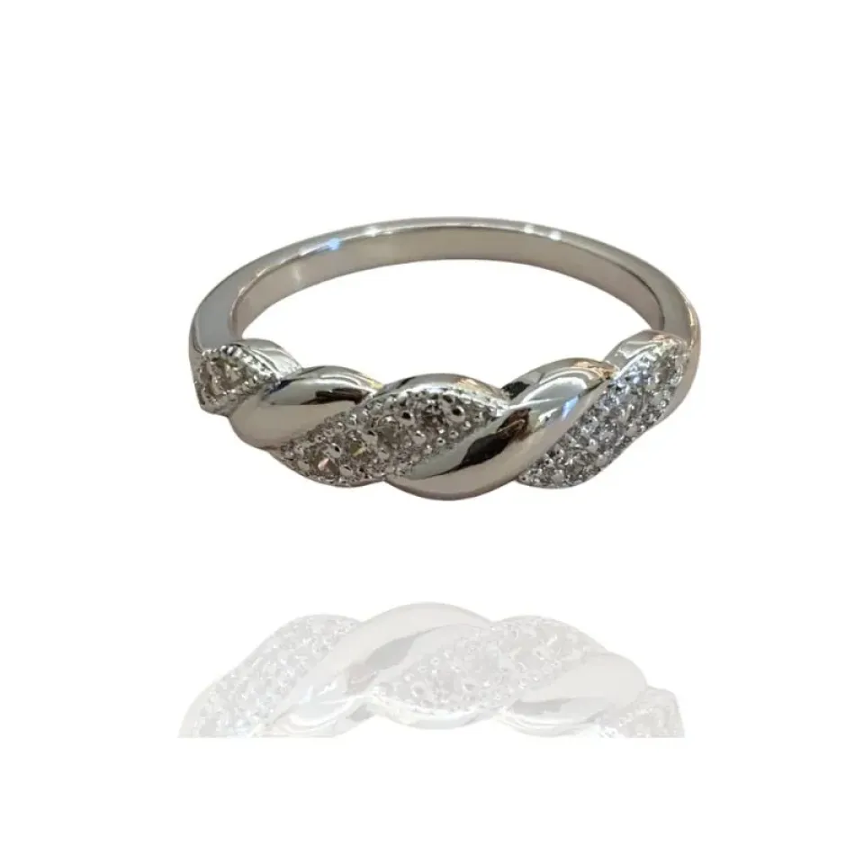 ANEL ENTRELAÇADO CRAVEJADO COM ZIRCÔNIAS CRISTAIS E LISO