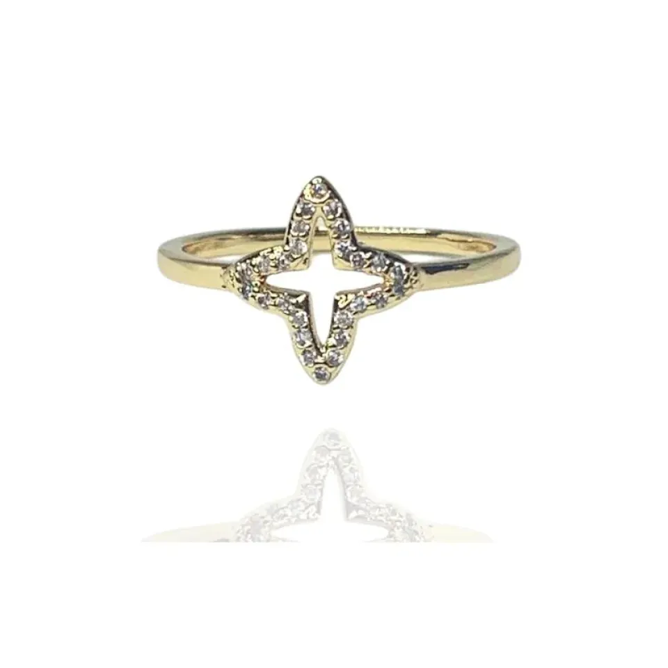 ANEL ESTRELA VAZADA CRAVEJADA ZIRCÔNIAS CRISTAIS