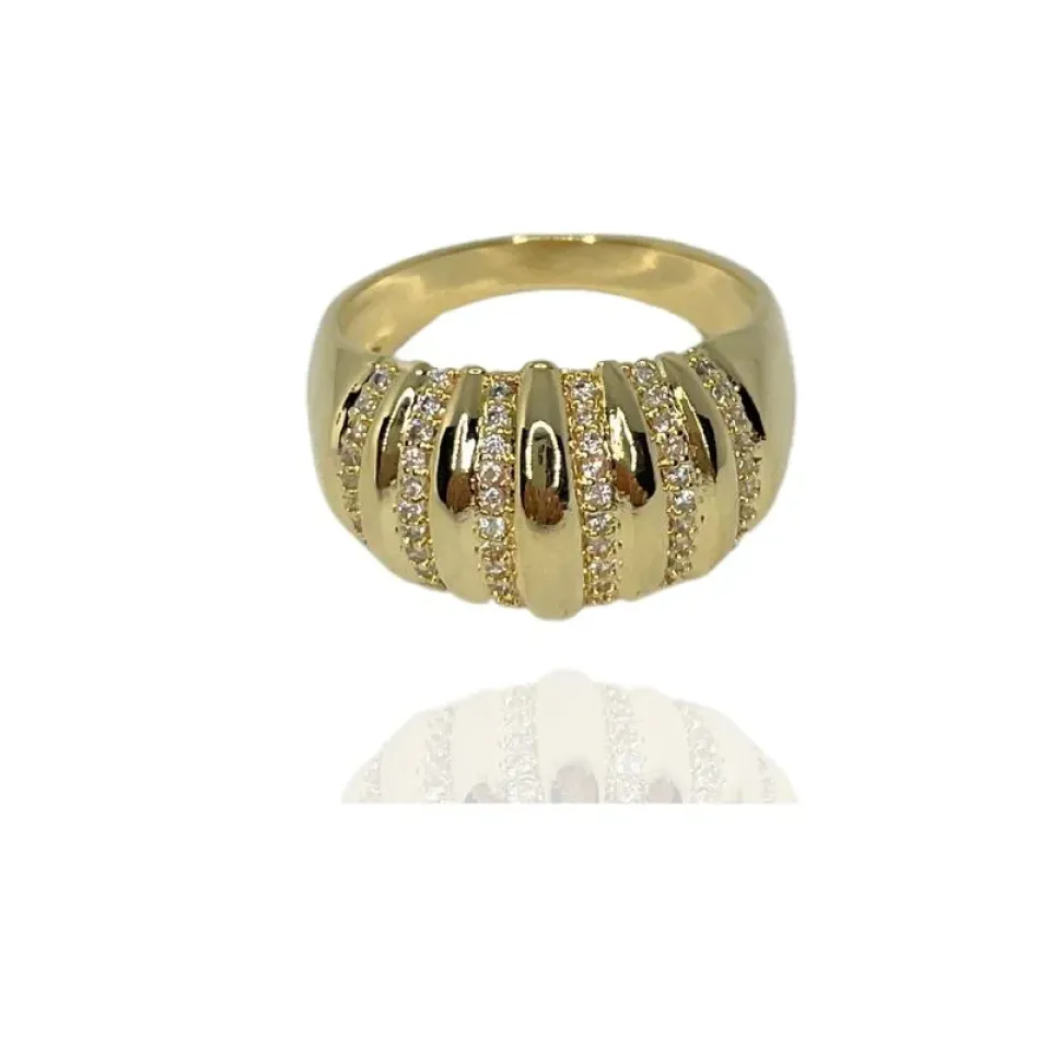 ANEL FILEIRAS LISAS E CRAVEJADAS COM ZIRCÔNIAS CRISTAIS