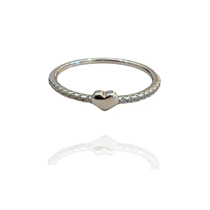 ANEL FINO CRAVEJADO CRISTAL COM 1 CORAÇÃO LISO