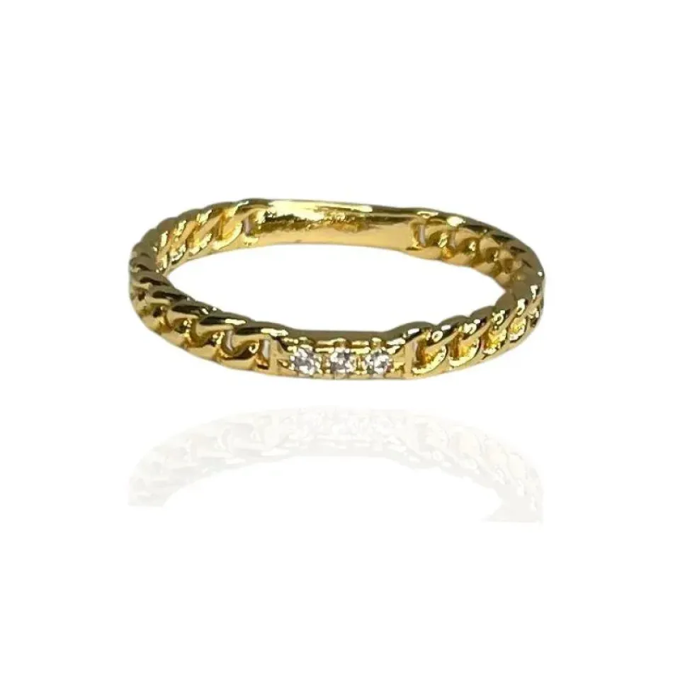 ANEL FINO ELOS E 3 ZIRCÔNIAS CRISTAIS
