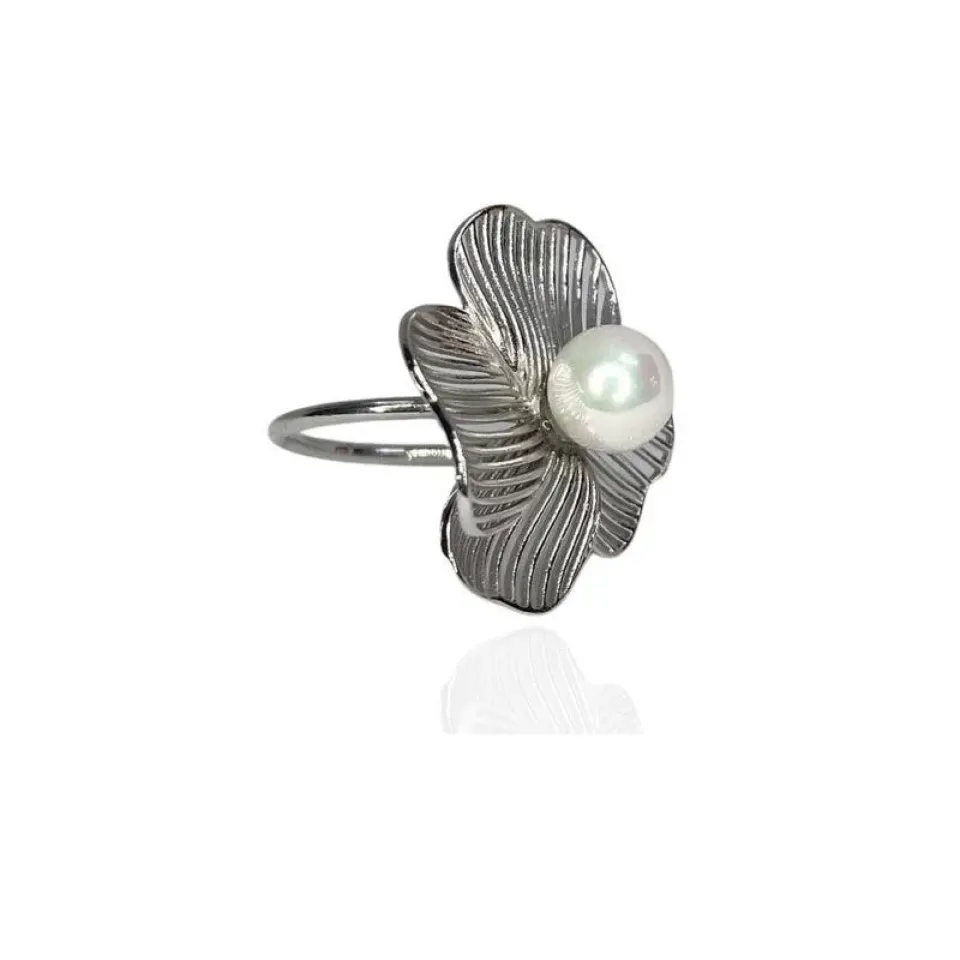 ANEL FLOR ORGÂNICA TEXTURA E PÉROLA