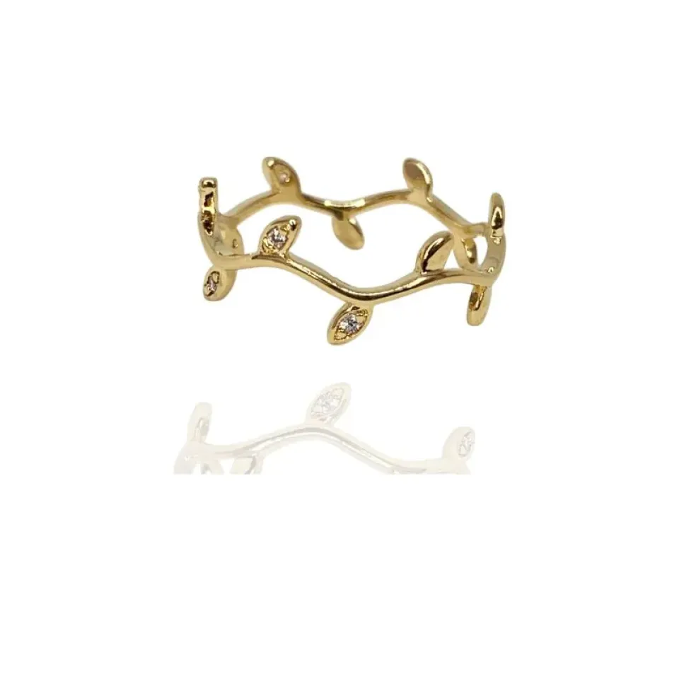 XAnel folhagem com cravação de zircônia cristal nas folhas