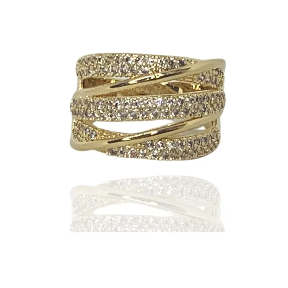 Anel grosso elos lisos e cravejados com zircônias cristais