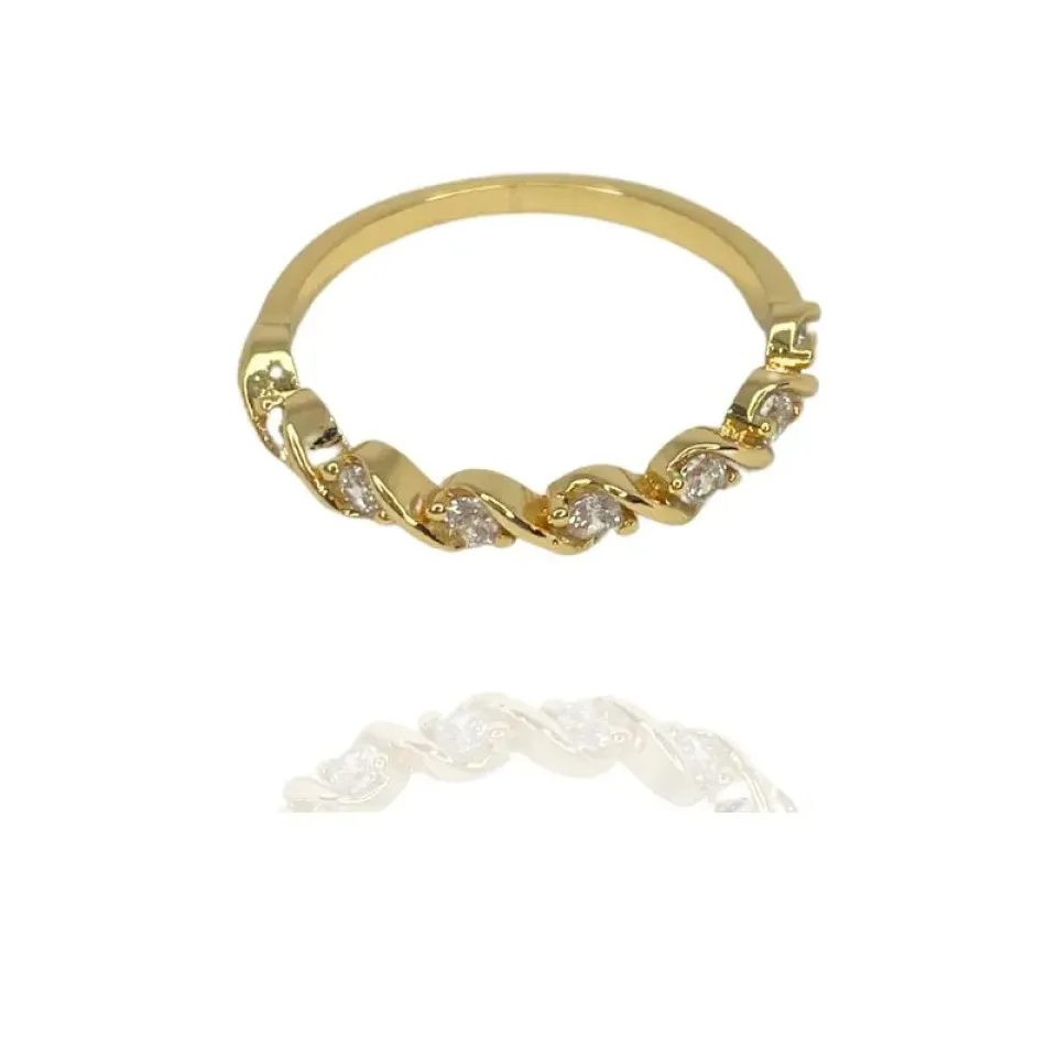 ANEL MEIA ALIANÇA ZIRCÔNIA ASPIRAL CRISTAL