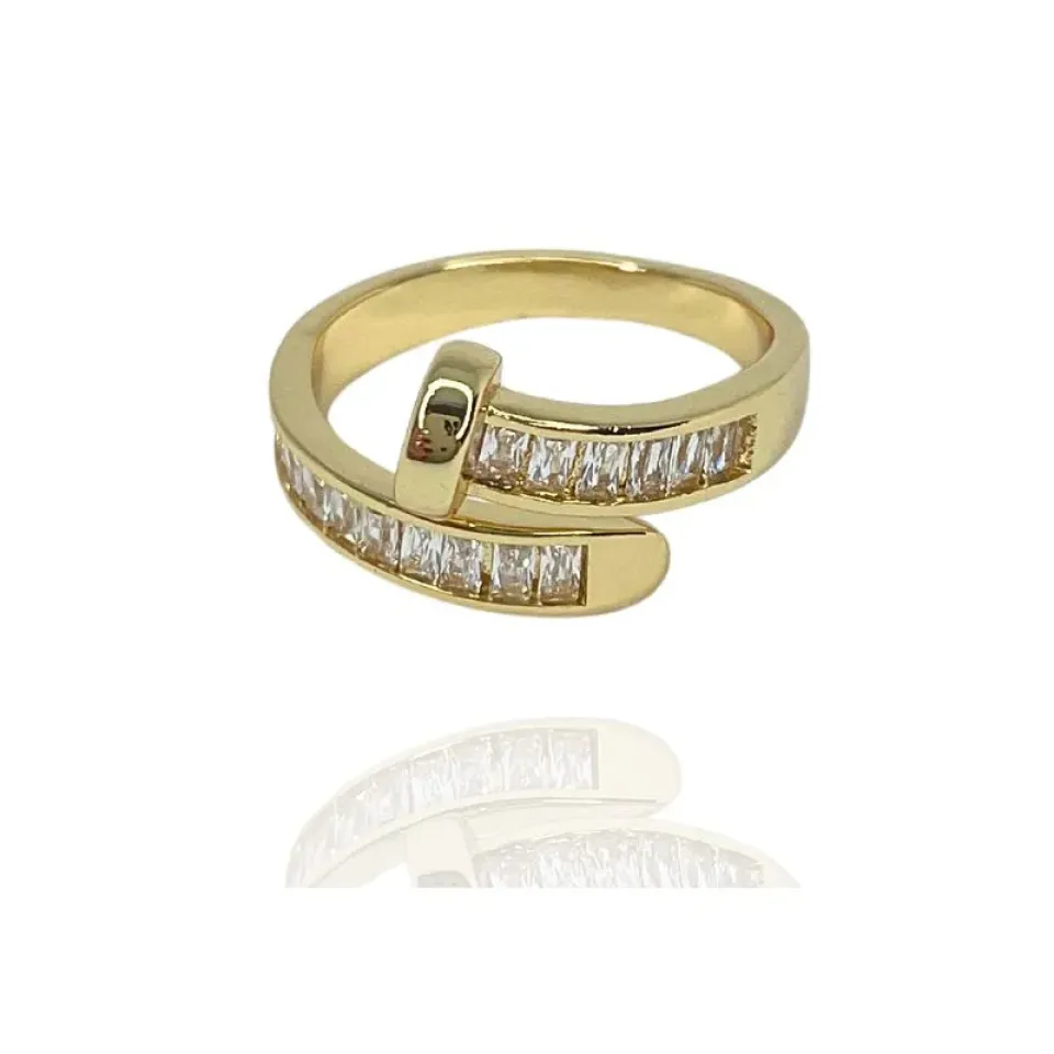 ANEL PREGO CRAVEJADO COM BAGUETES CRISTAIS