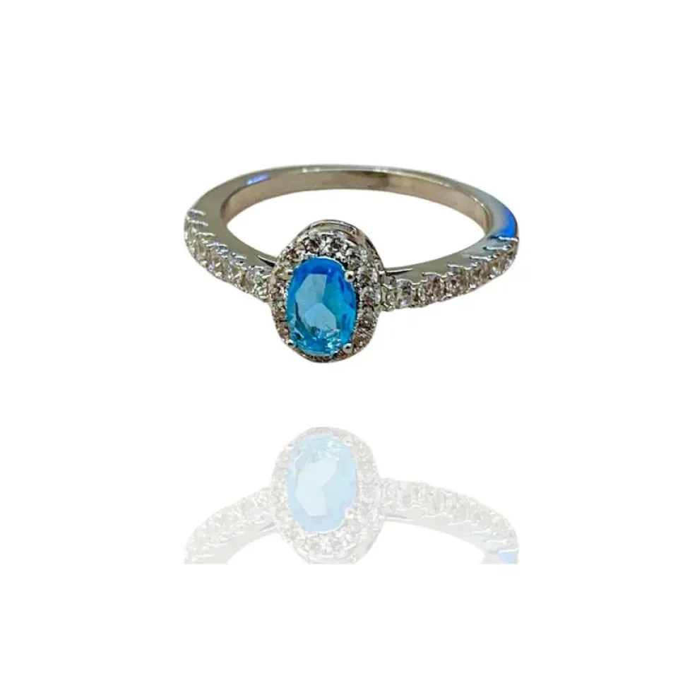 ANEL PRINCESA OVAL CRAVEJADO PEDRA AQUA