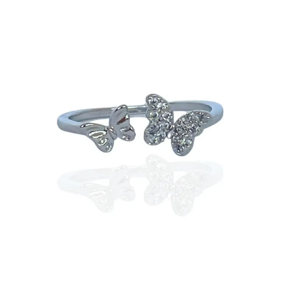 ANEL REGULÁVEL BORBOLETAS LISA E CRAVEJADA