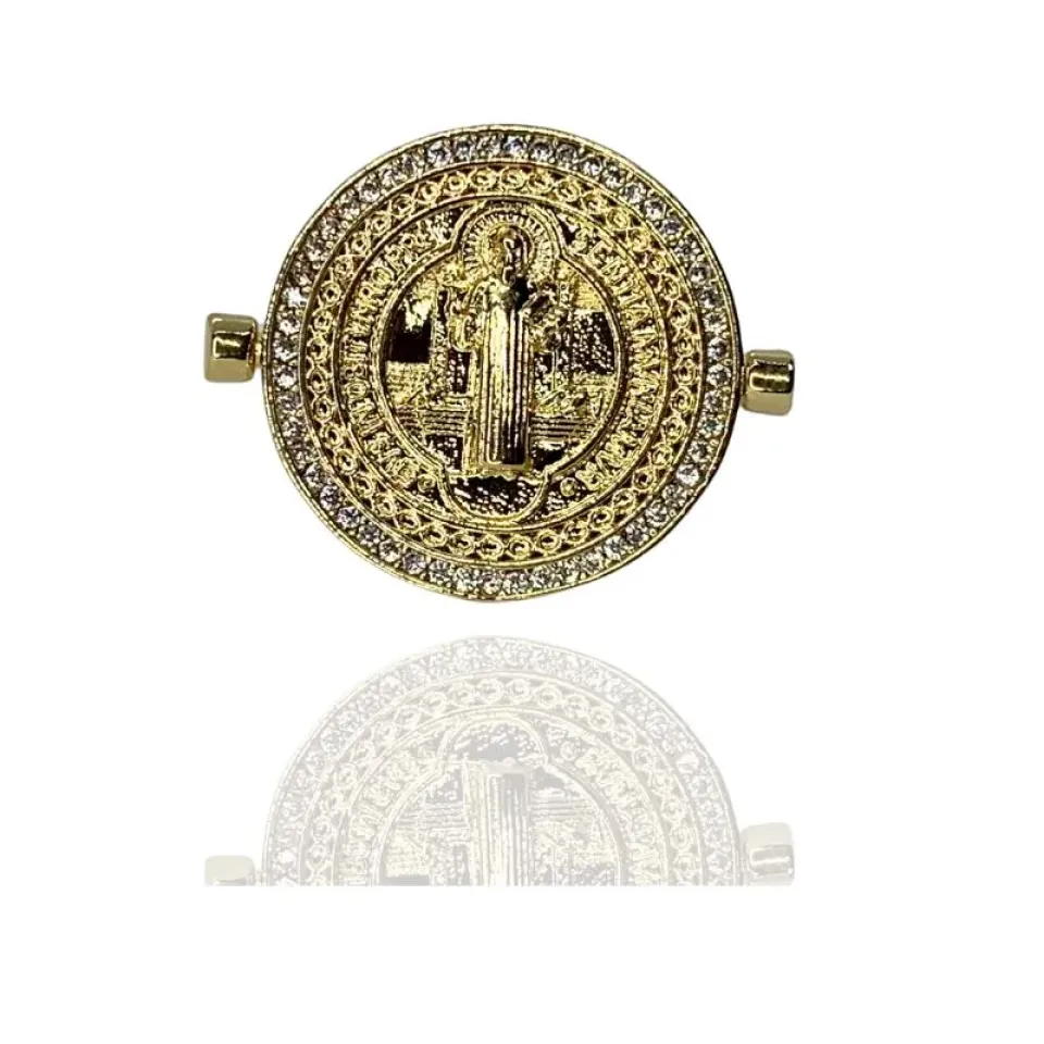 XAnel medalha São Bento giratória com cravação cristal em volta