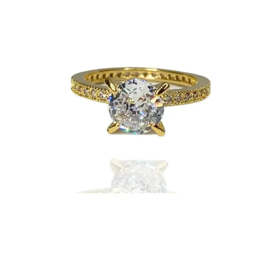 Anel solitário cravejado no aro