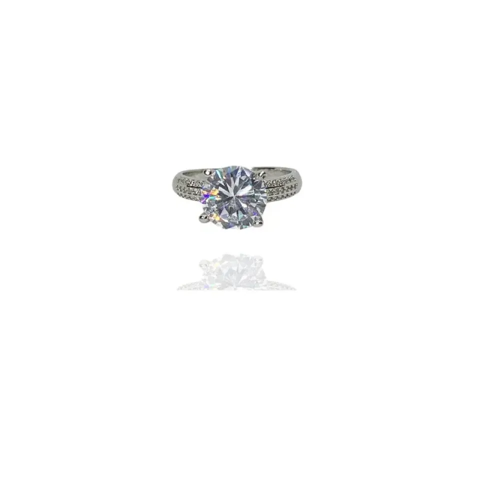 XAnel solitário zircônia cristal grande caixa alta e cravação dos lados
