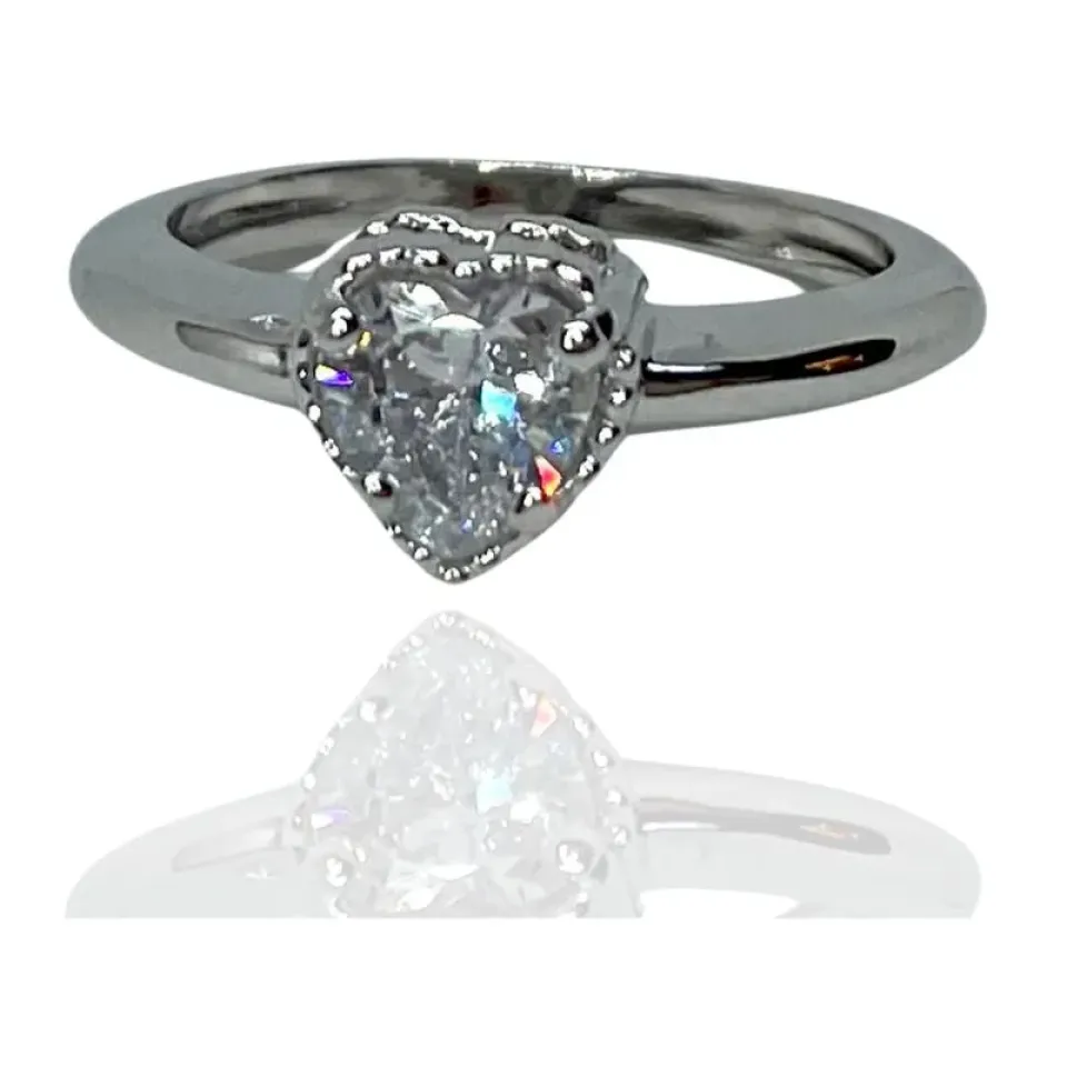 XAnel solitário coração zircônia cristal com aro