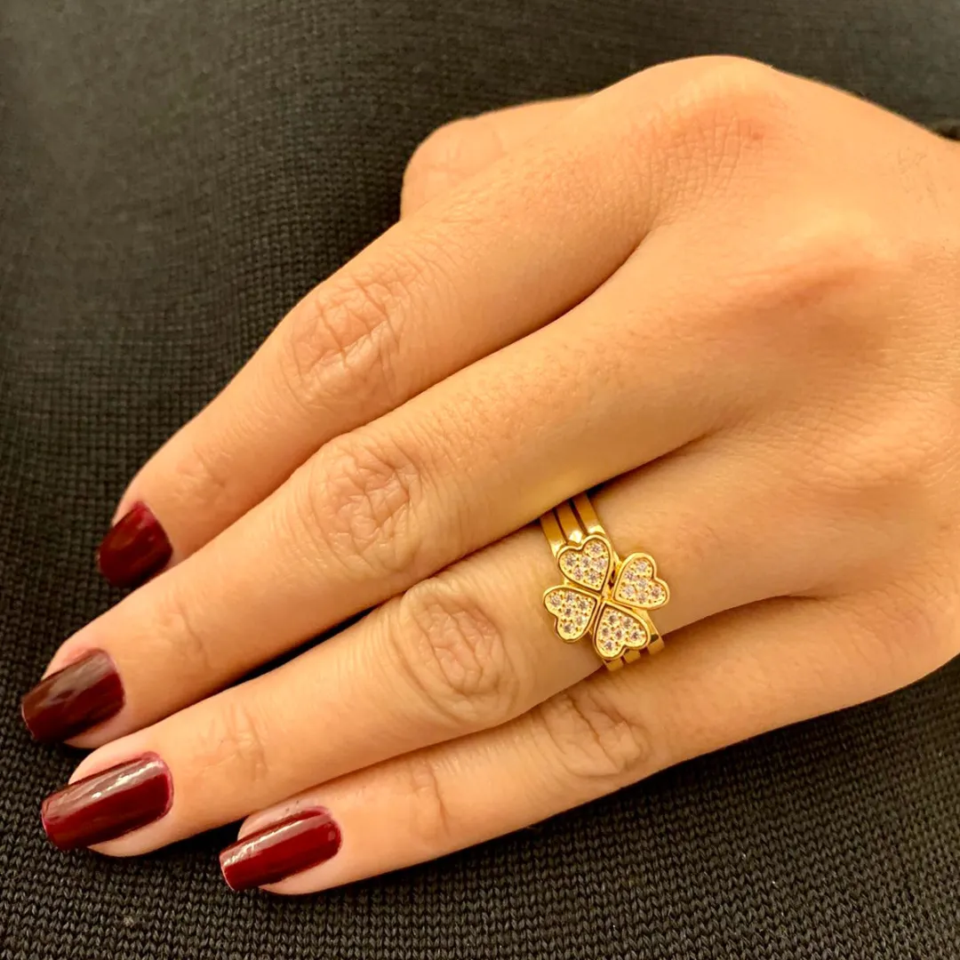 ANEL TRIPLO TREVO EM FORMATO DE CORAÇÃOConfira opiniões e avaliações de clientes!