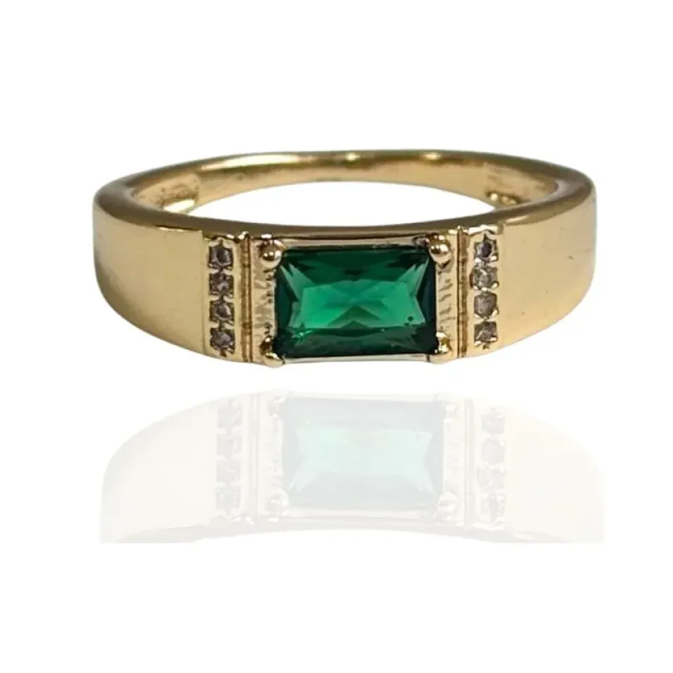 ANEL ZIRCÔNIA RETANGULAR PEDRA VERDE ESMERALDA