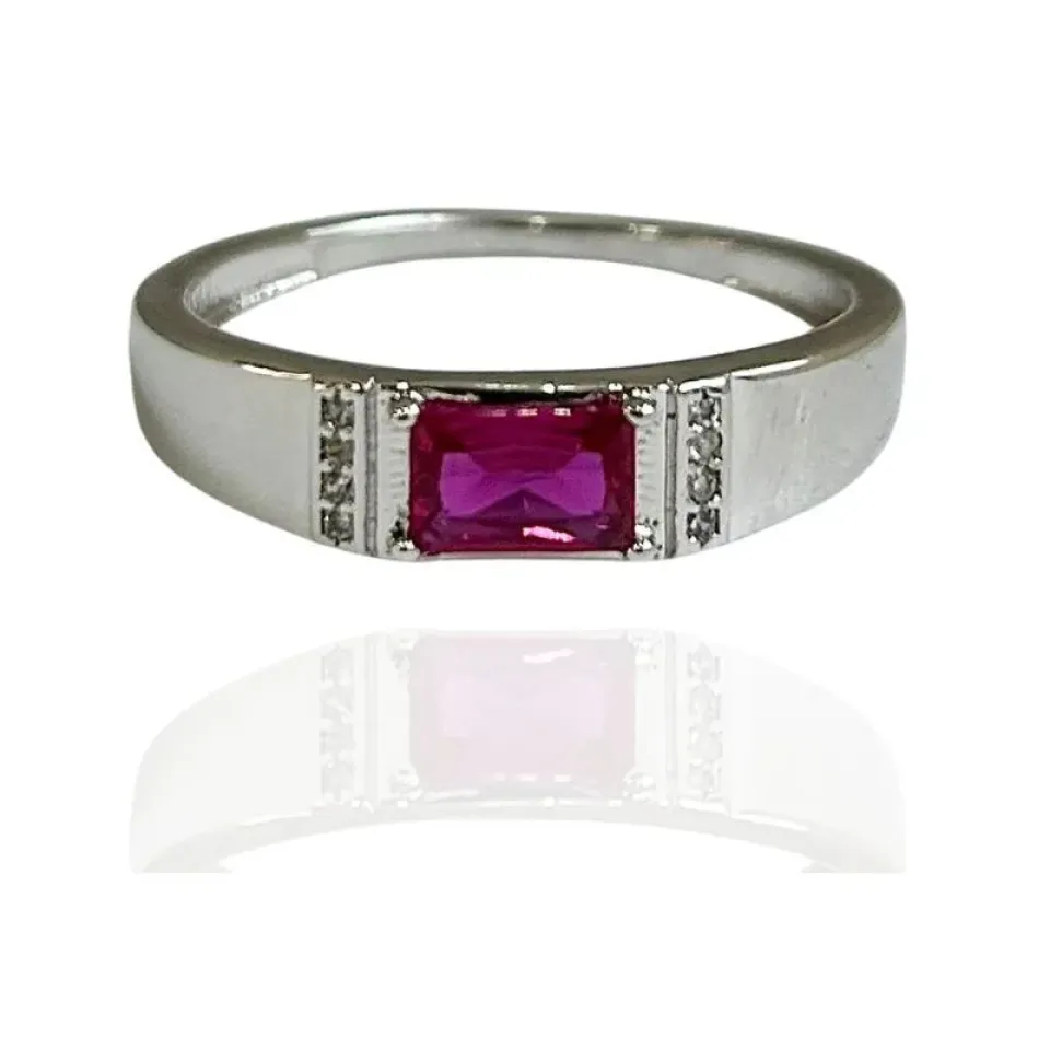 ANEL ZIRCÔNIA RETANGULAR PEDRA RUBI