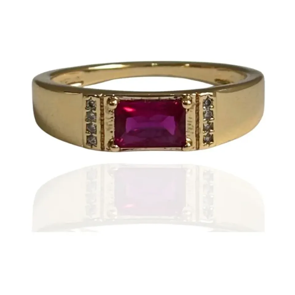ANEL ZIRCÔNIA RETANGULAR PEDRA RUBI