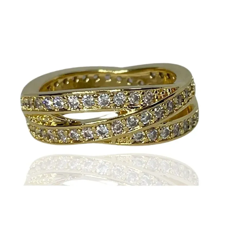 Anel 3 elos cravejados com zircônias cristais entrelaçados