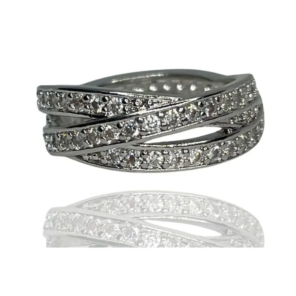 XAnel 3 elos cravejados com zircônias cristais entrelaçados