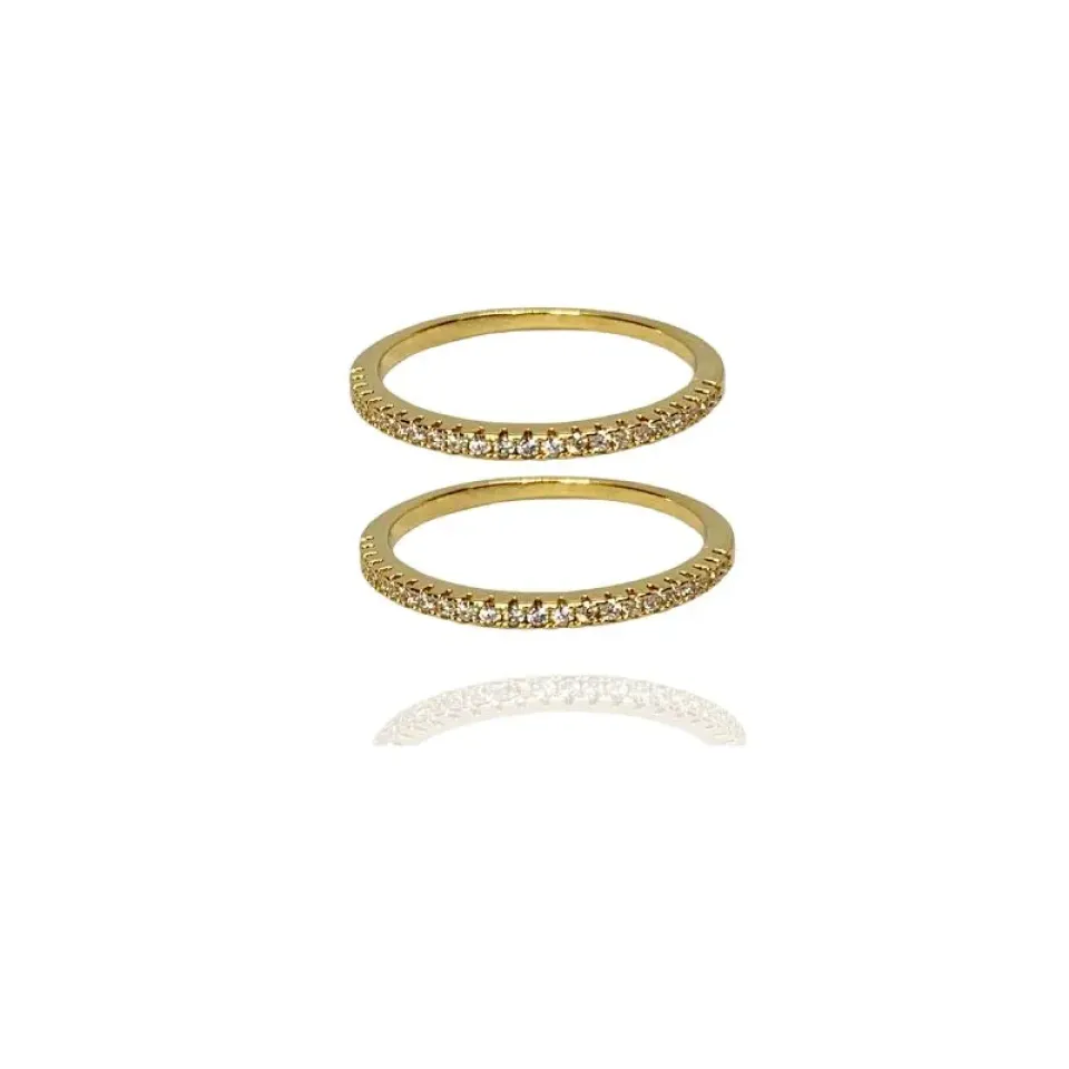 Aparador duplo meia aliança cravejada na parte de cima com zircônias cristais