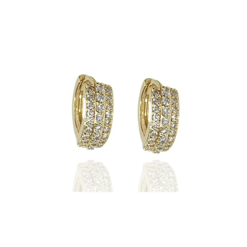 Argola média com 3 fileiras de zircônias cristais