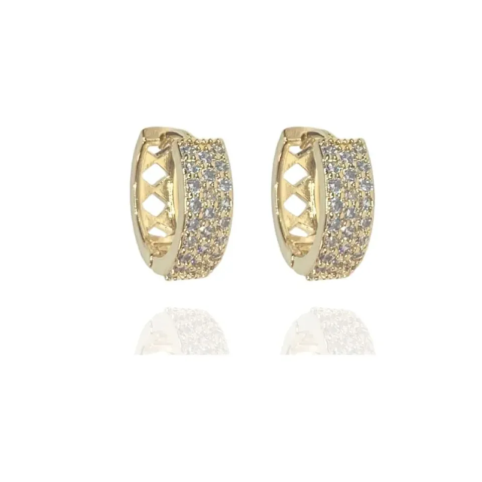 Argola média 3 fileiras cravejadas com zircônias cristais
