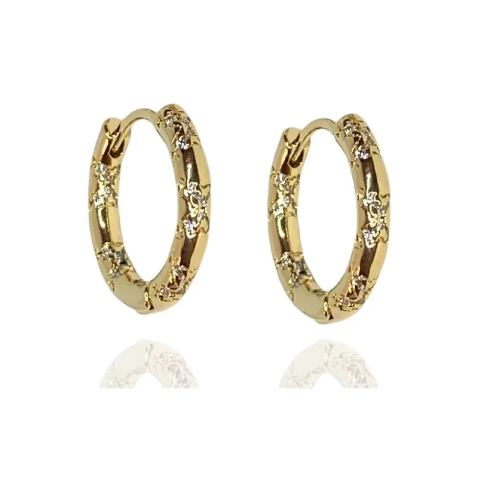 Argola fina trabalhada com detalhes em zircônias cristais