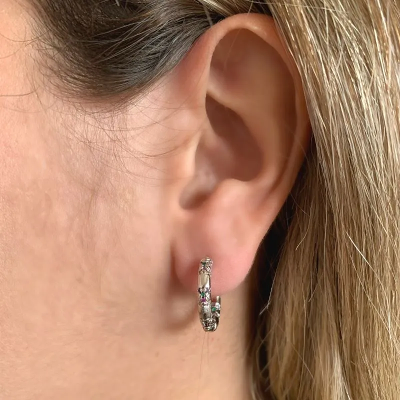 Argola fina trabalhada com detalhes em zircônias coloridas