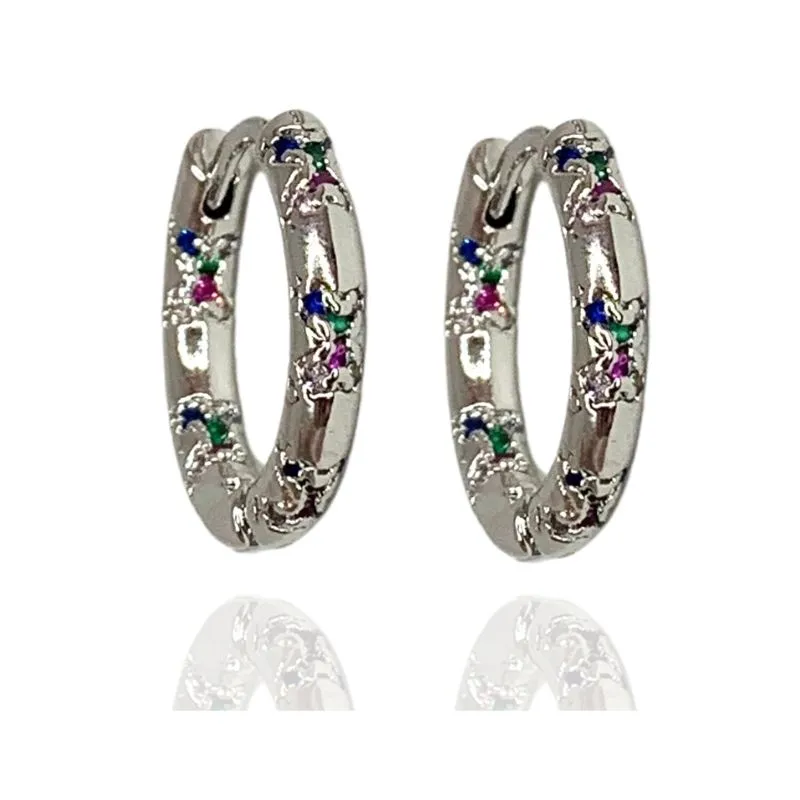 XArgola fina trabalhada com detalhes em zircônias coloridas