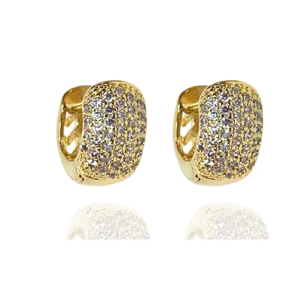 Argola grossa pequena com 7 fileiras cravejadas de zircônias cristais