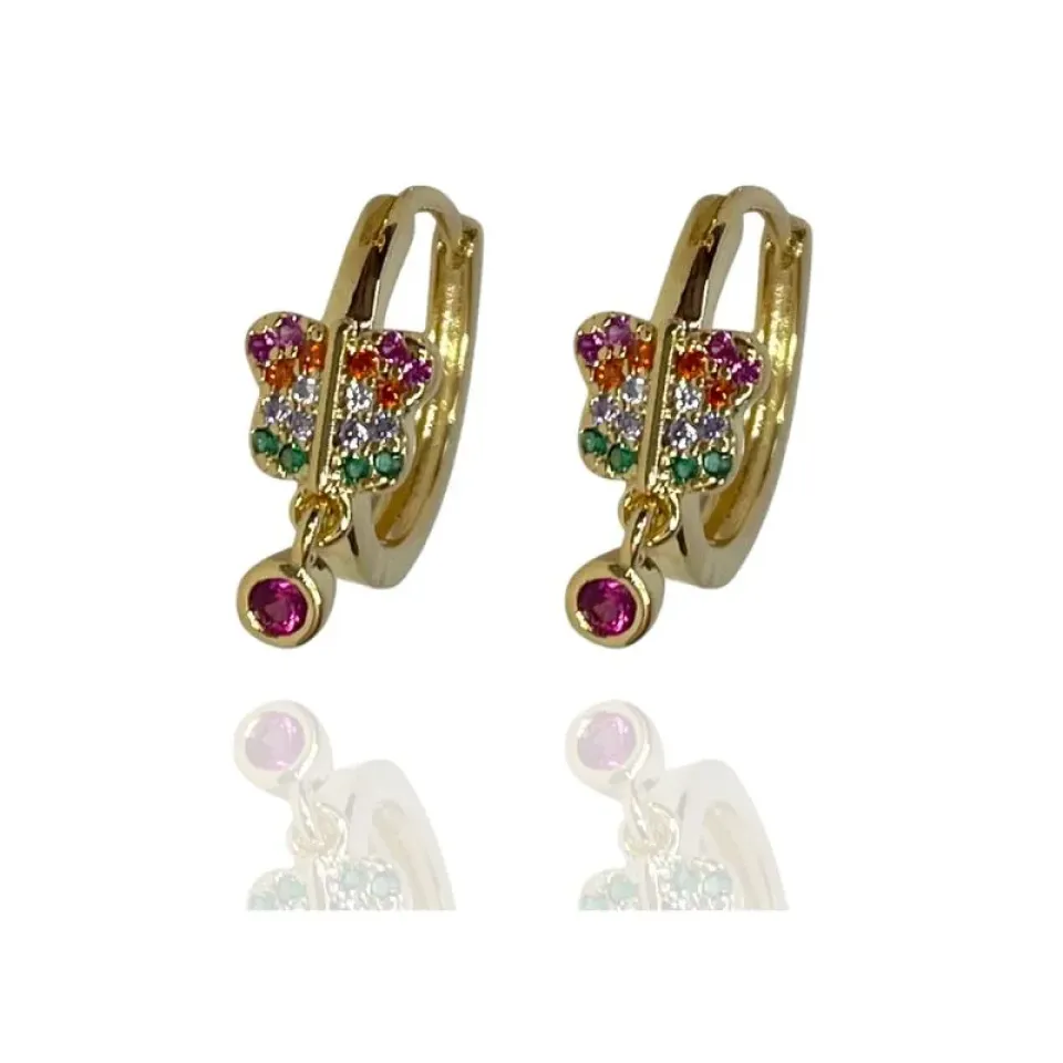 Argola infantil borboleta cravejada colorido e zircônia pendurada