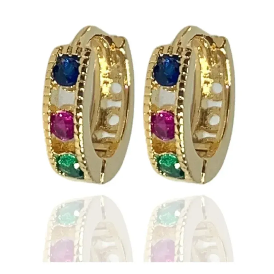 Argola mini com 3 zircônias coloridas