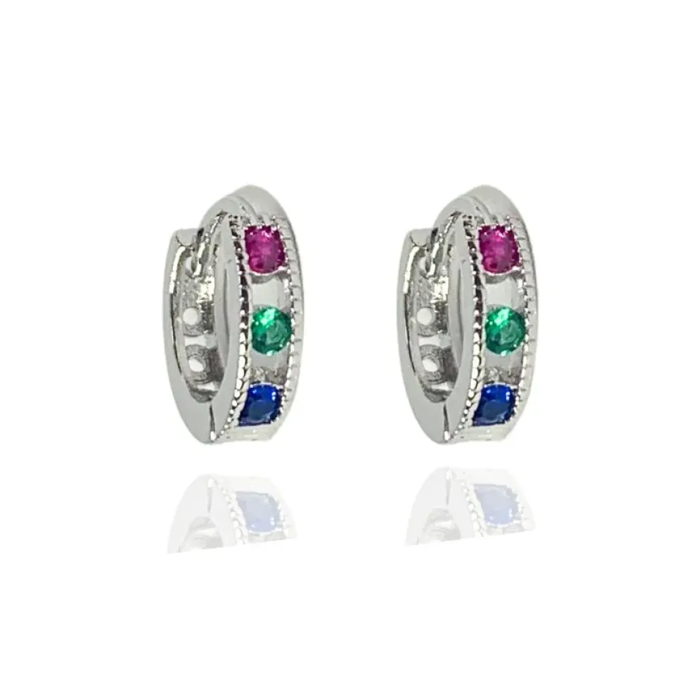 Argola mini com 3 zircônias coloridas