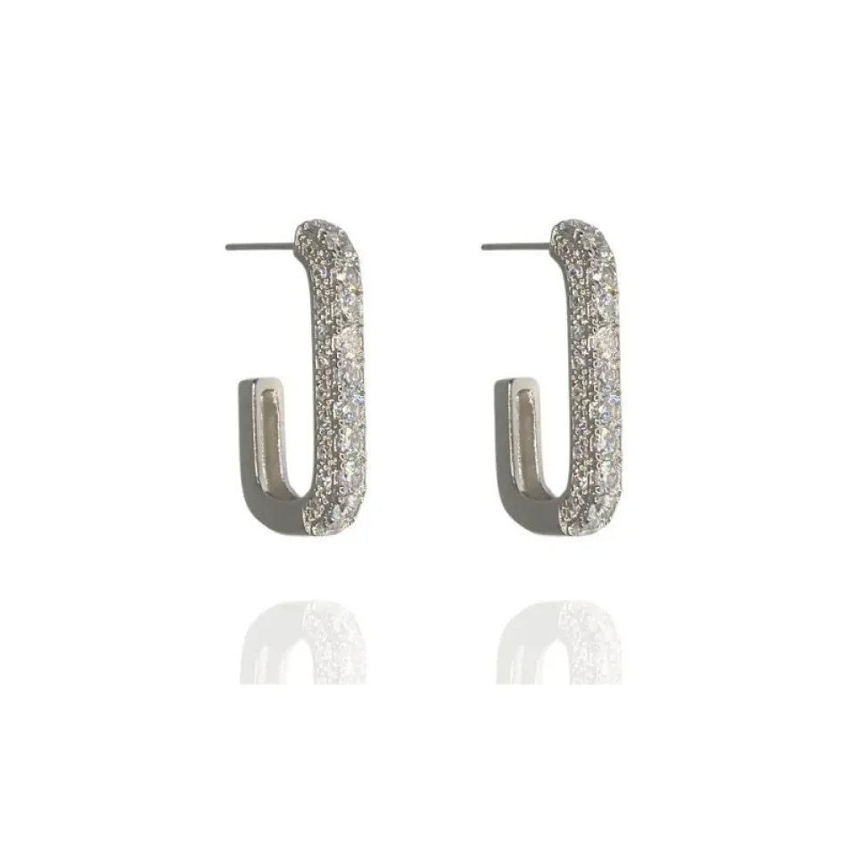 ARGOLA TARRAXA EM FORMATO J CRAVEJADA CRISTAL