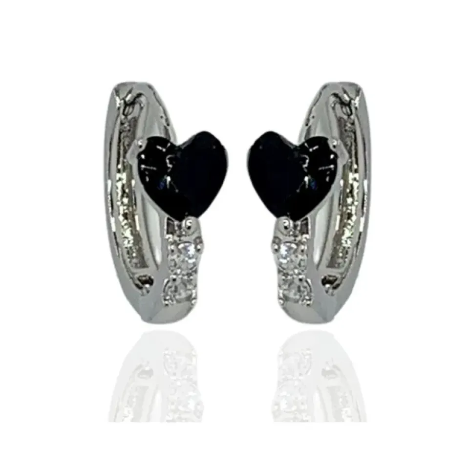 Argola com zircônia negra em formato de coração