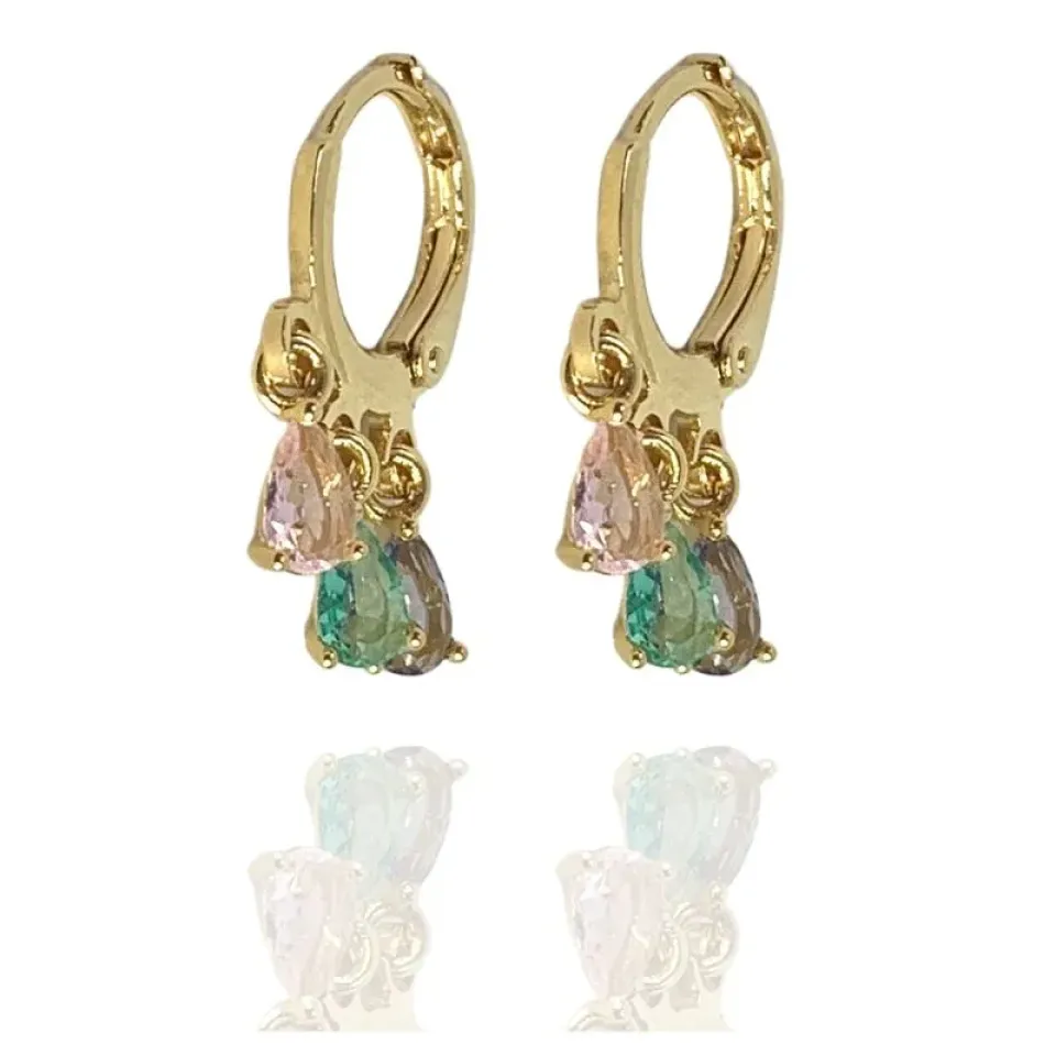 XArgola click 3 gotas em zircônias rosa, turmalina, lilás
