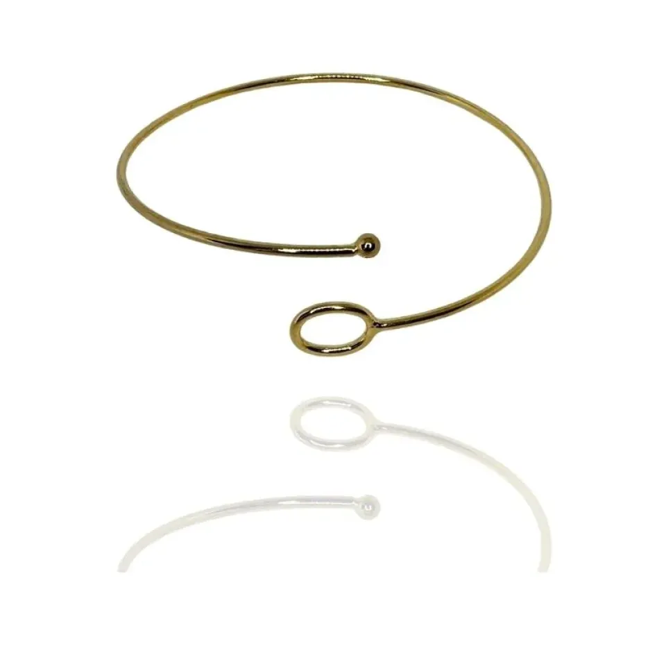 Bracelete fino com bola na ponta e oval vazado na outra ponta