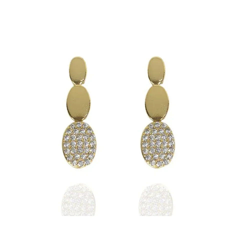 BRINCO 3 PARTES OVAIS E UMA CRAVEJADA CRISTAL