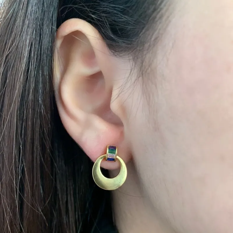 Brinco com base em baguetes coloridas e aro vazado pendurado