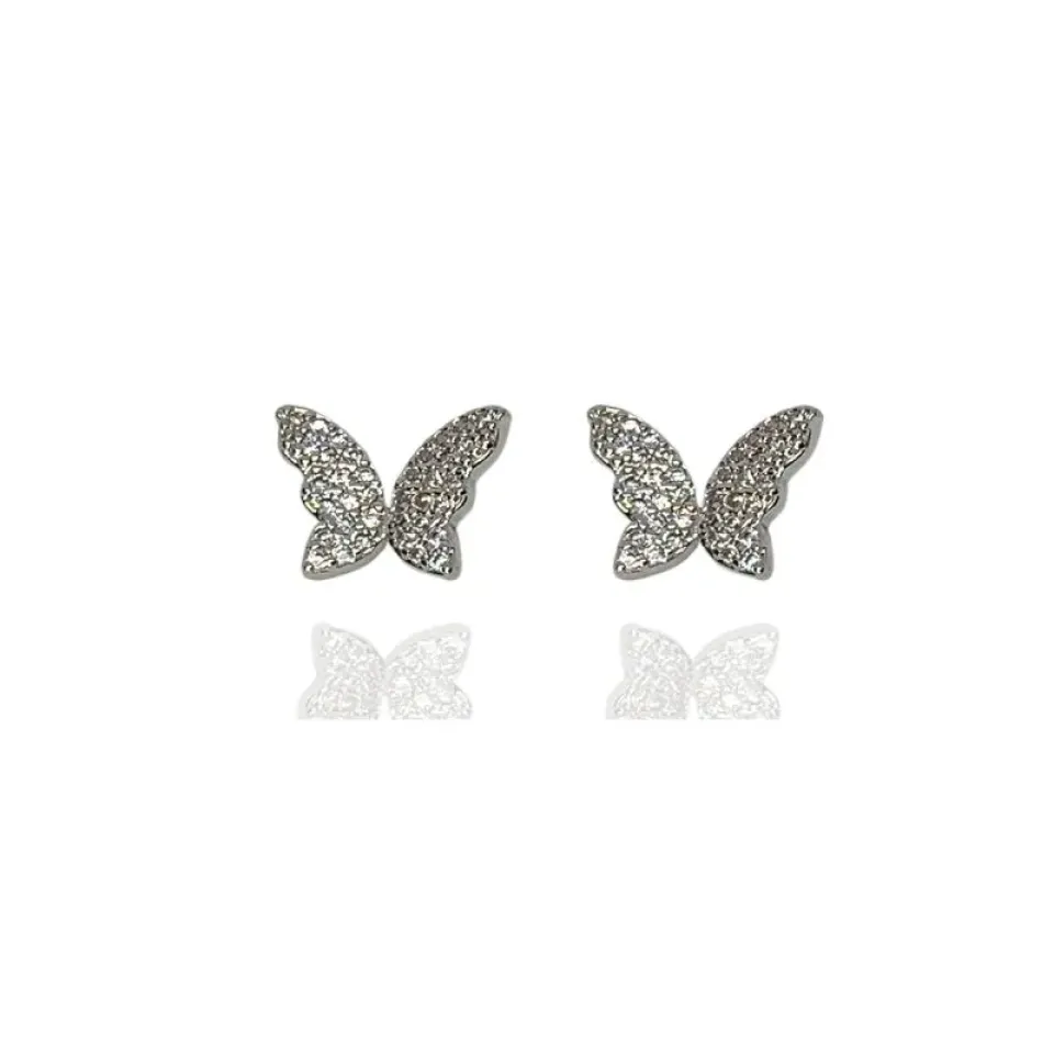 Brinco borboleta G cravejada zircônias cristais