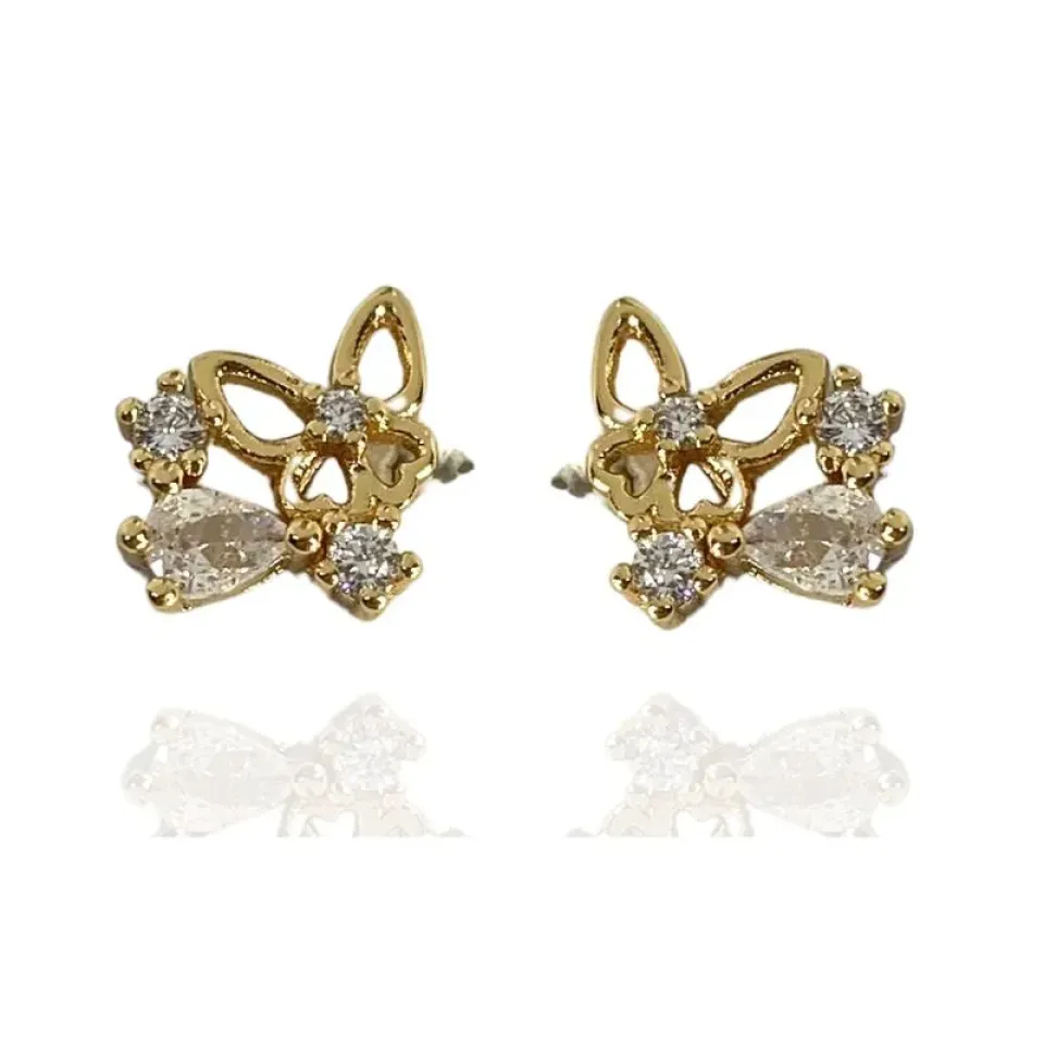 BRINCO BORBOLETA GOTA E ZIRCÔNIAS CRISTAIS