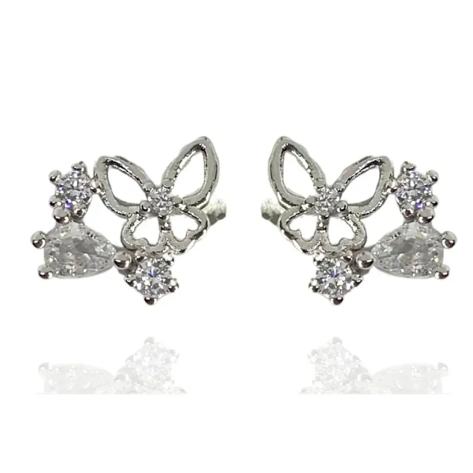 BRINCO BORBOLETA GOTA E ZIRCÔNIAS CRISTAIS